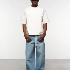Our mock neck tee has a higher, more structured collar on our signature cropped and boxy tee. Made from our heavyweight 340gsm cotton jersey, it’s cut with dropped shoulders and a slightly cropped hem to create an oversized, boxy silhouette. It features a screen printed about:blank accent on the back.