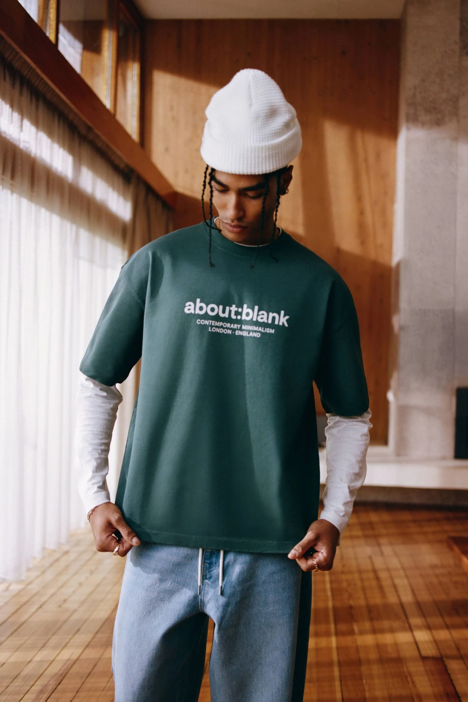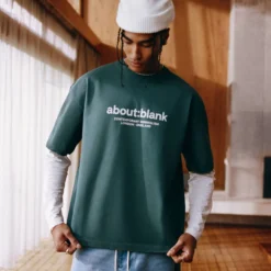 Printed with water-based discharge ink for a soft handfeel, it’s built on our signature cropped and boxy t-shirt block with twin-needle detailing and no side seam topstitch for a cleaner drape.