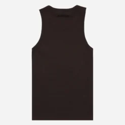 A ribbed jersey vest made from 290gsm waffle cotton, finished with twin-needle binding at neck and armhole. Cut in a regular fit with a babylock hem and high-build embroidery at the back neck.