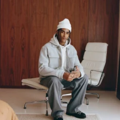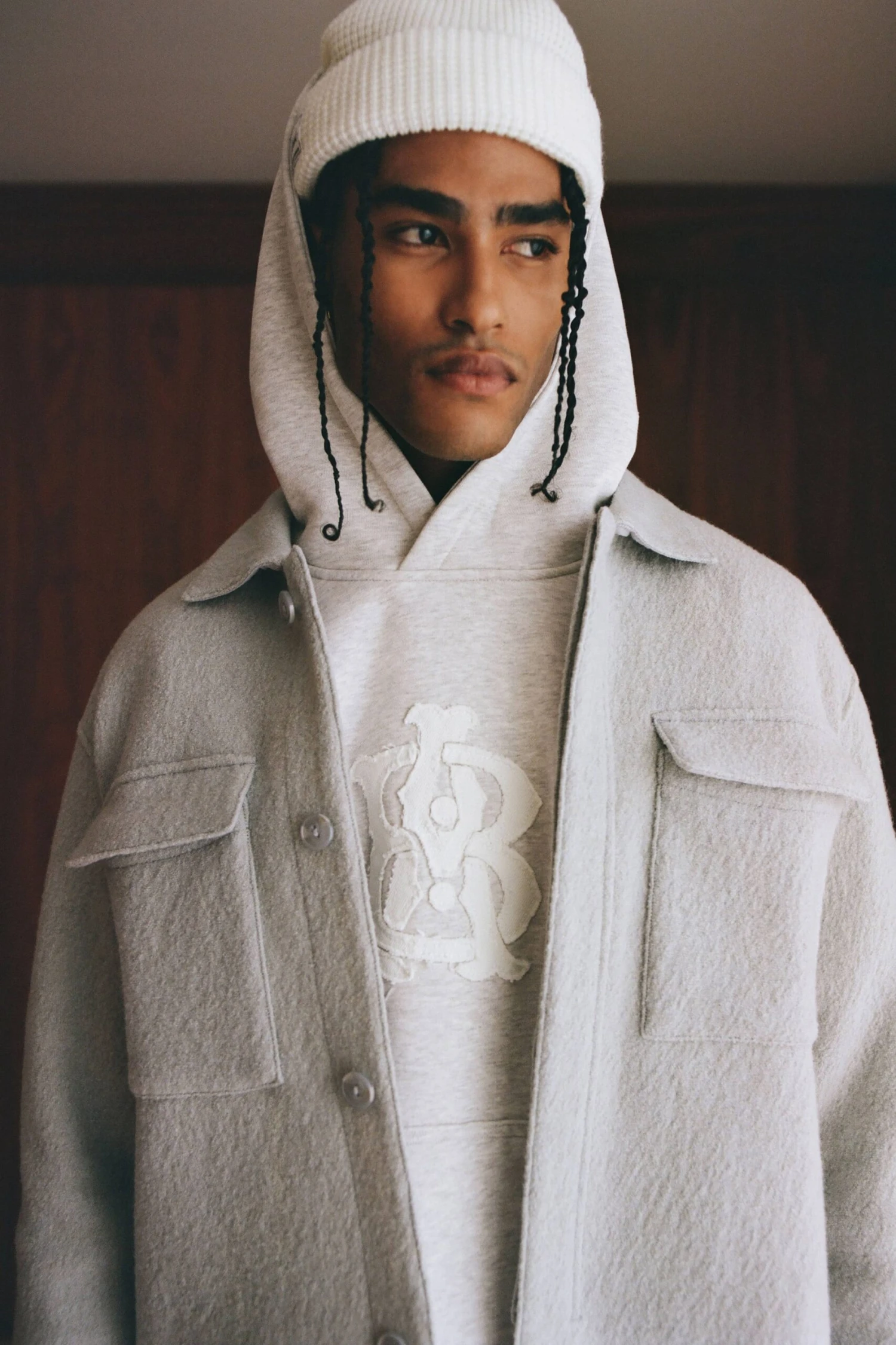 This is a rerun of one of our most requested hoodies. The monogram cut-off hoodie features a relaxed fit, a cut-off and raw hem and monogram branding.