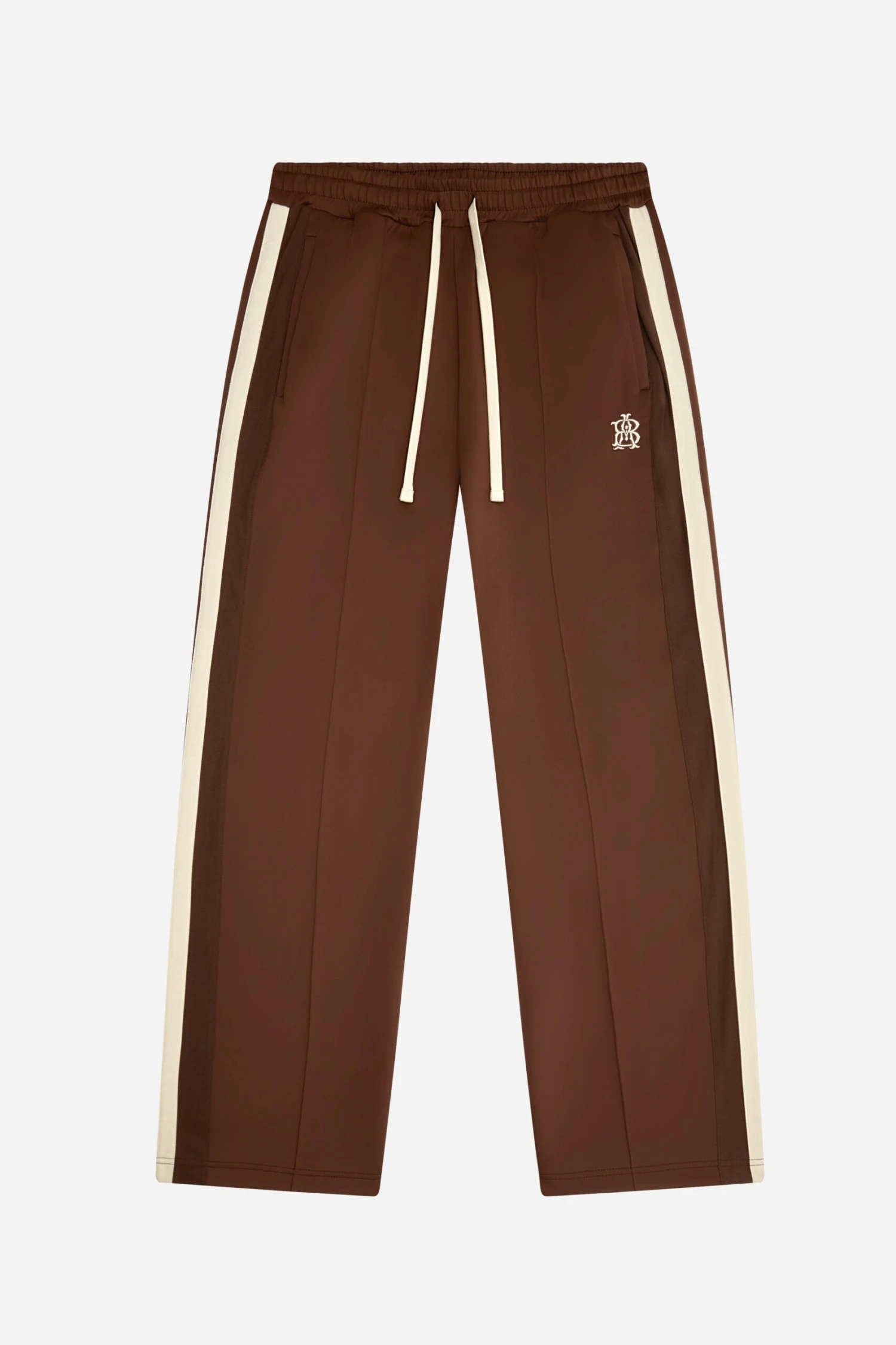 A straight-leg trackpant built from a soft poly blend. Features a contrast side stripe, concealed ankle zips, and tonal 3D monogram embroidery. Easy through the thigh, tailored at the ankle.