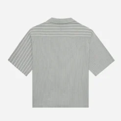 A short-sleeve resort shirt cut in 140gsm cotton with a revere collar and updated fit. Features red chest embroidery, a button-loop collar closure, back darts for shaping, and a three-dot back neck stitch.