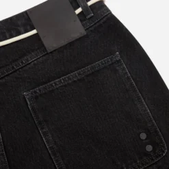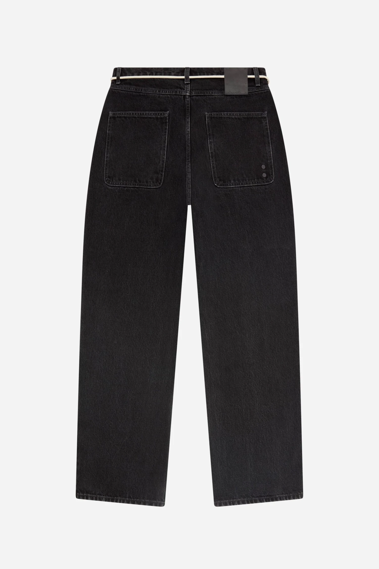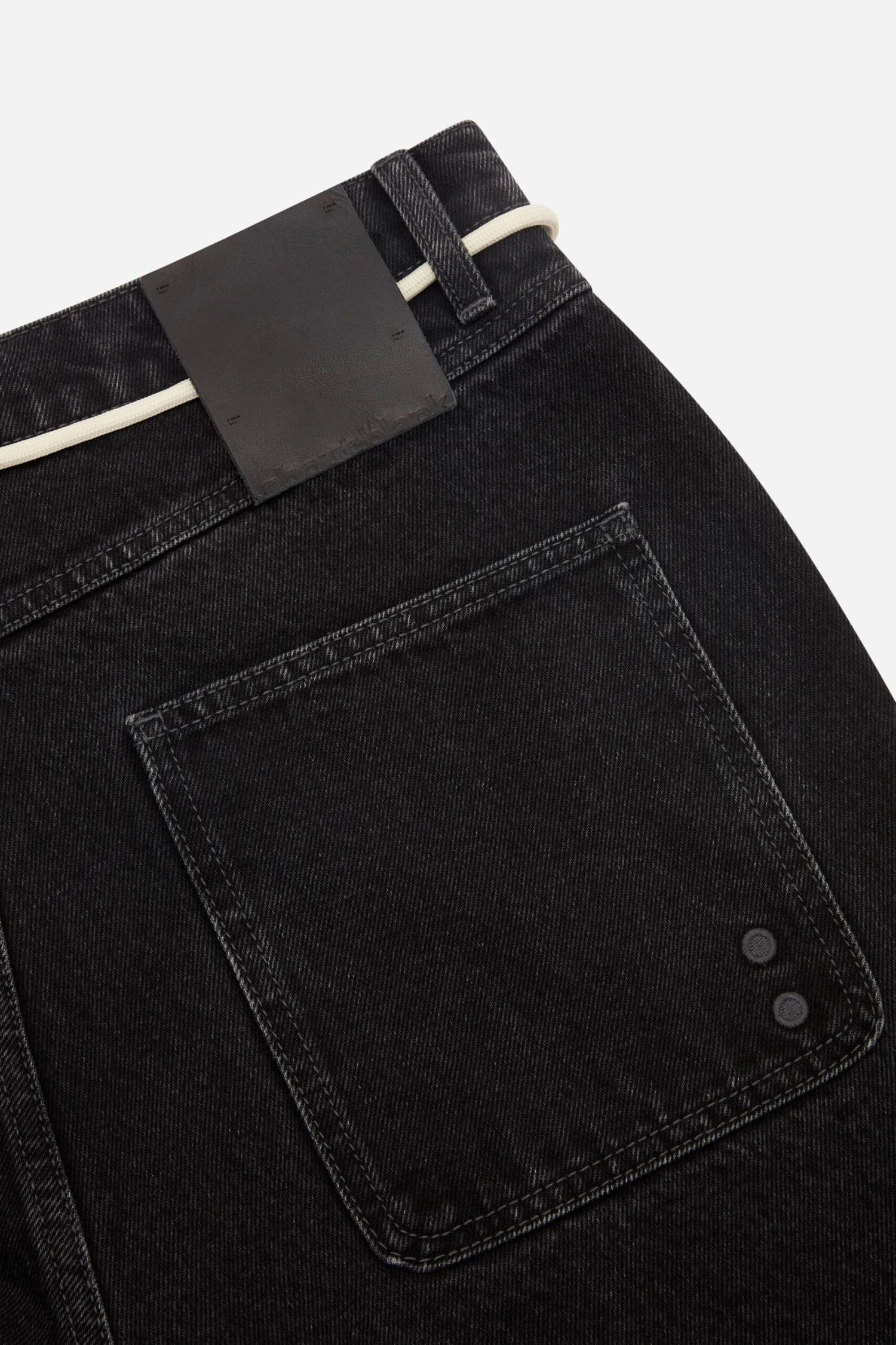 Our new relaxed denim block is a baggier silhouette than our previous denim offer. The jeans feature a 100% cotton denim weave, twin back pockets, and an embroidered “:” detail on the back pocket. The silhouette has been designed to sit well on either a trainer or a loafer and offers a contemporary take on denim.