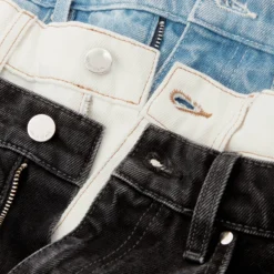 The denim has a feature leather jacron tab above the back pocket, plus a new monogram detail on the front pocket.