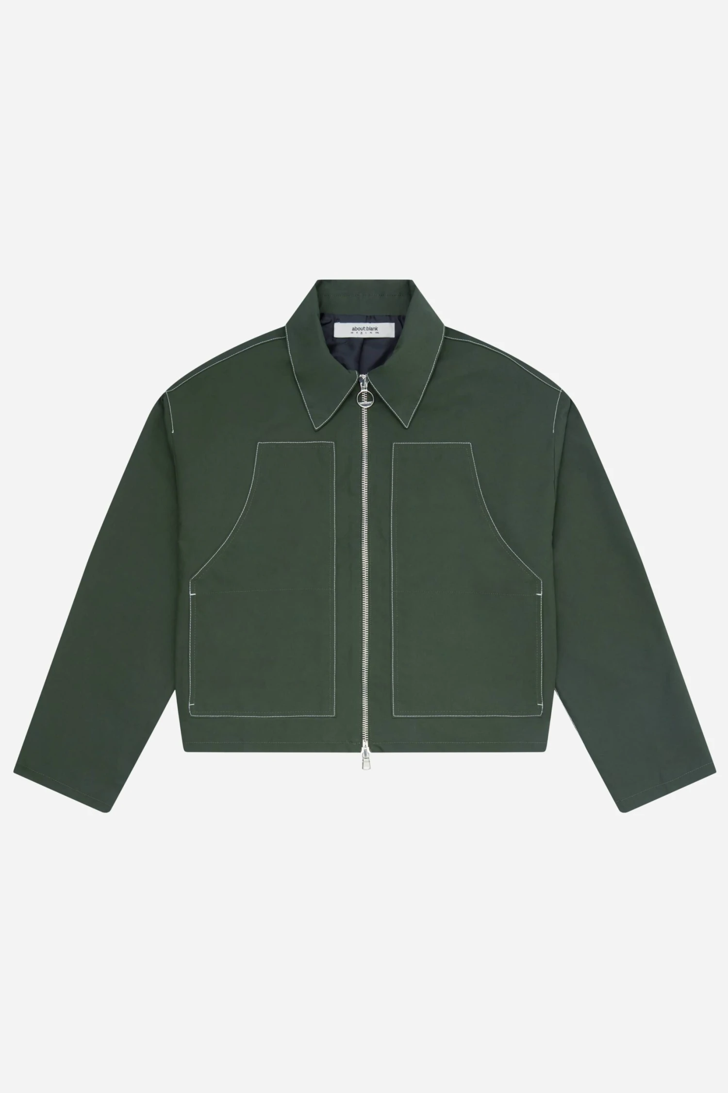 It has our signature cropped and boxy fit with detailed long line pockets.