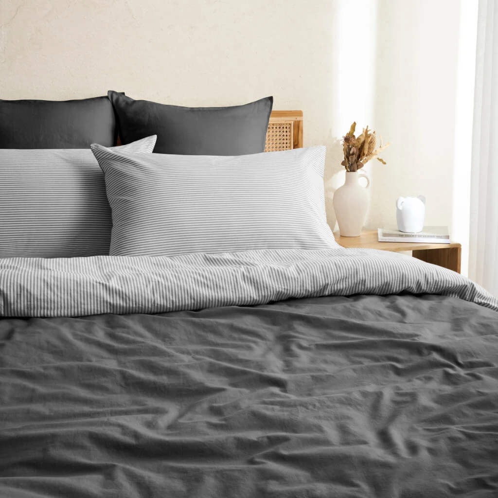 Bring in a relaxing vibe in your bedroom with the Tontine Reversible Vintage Stripe Quilt Cover Set. The reversible design with premium fine cotton allows you to transform your bedroom in moments.