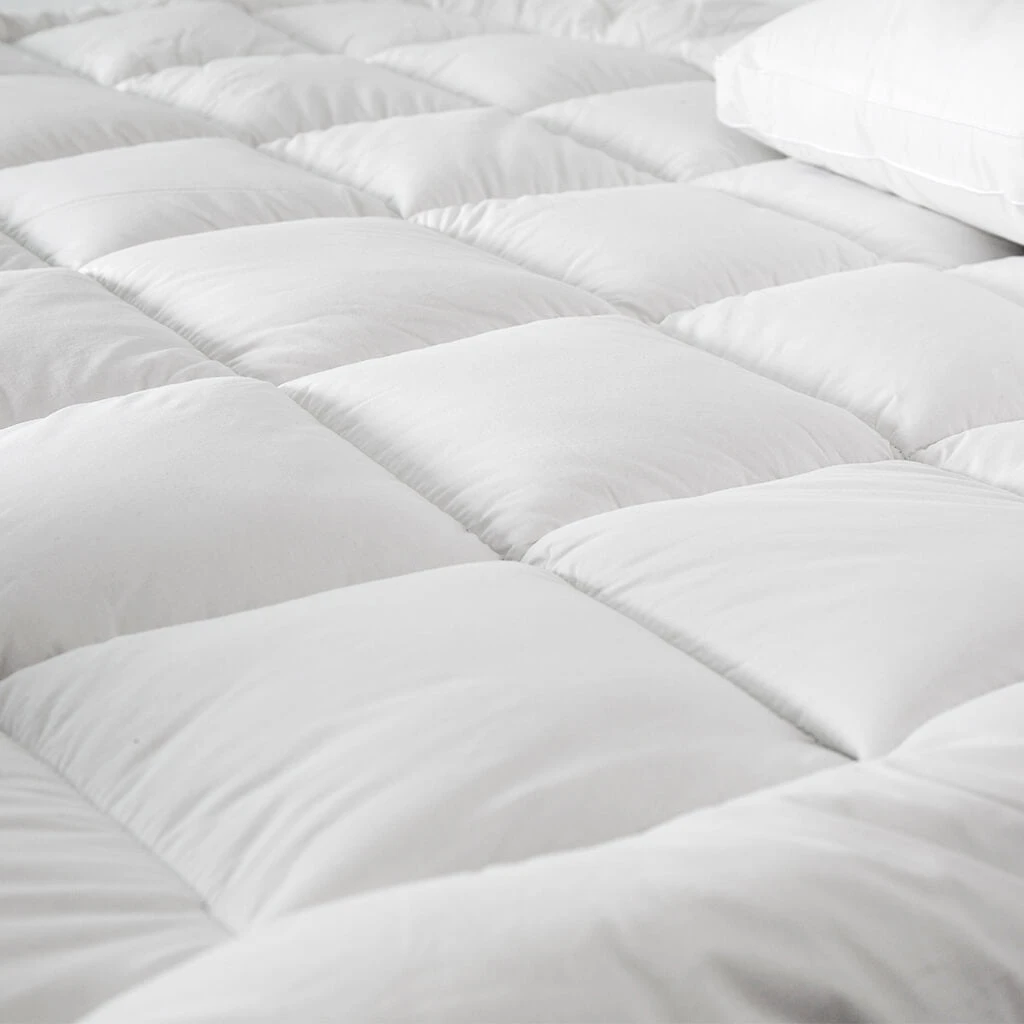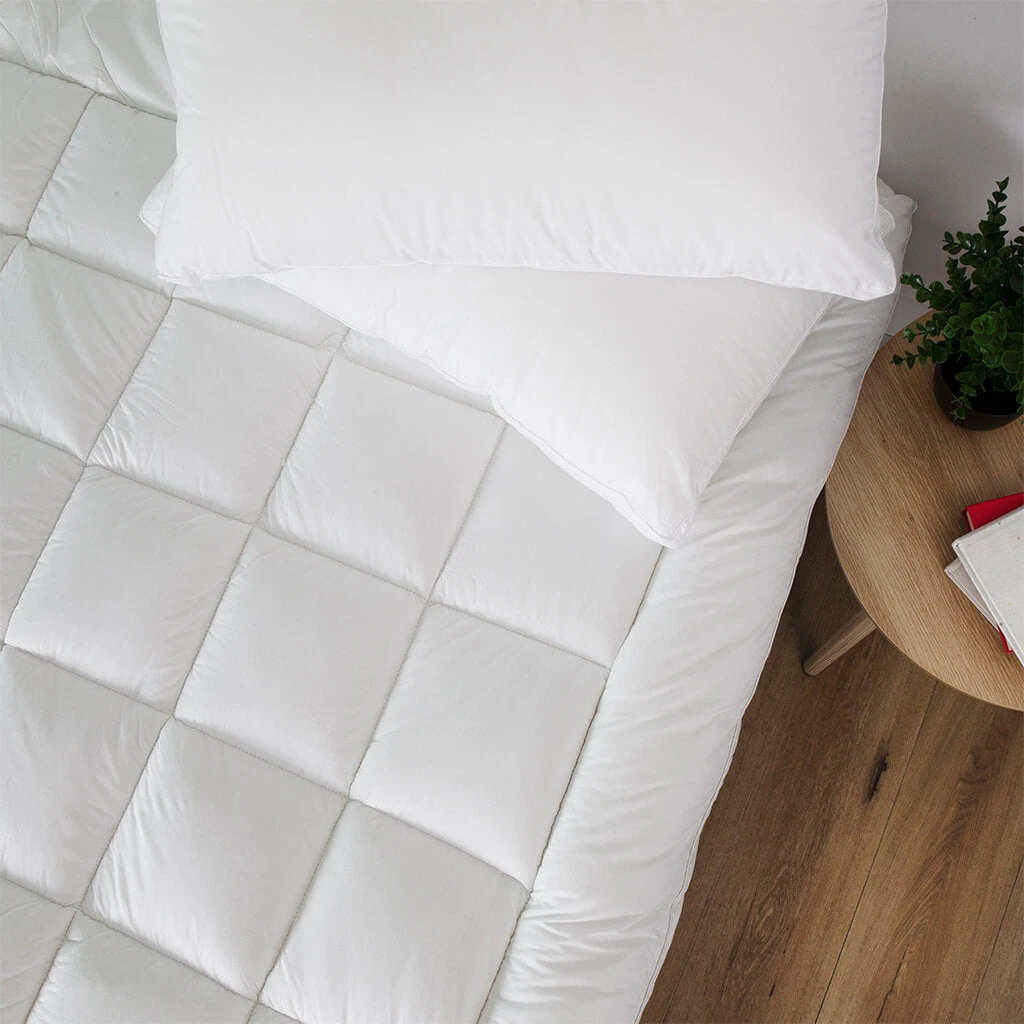 Specially designed to add a lofty layer of comfort to the mattress while you sleep and beautifully finished in white satin piping with a box stitch pattern for even support distribution. To help it stay secure and in place on you mattress, this topper is fitted with a 40cm fitted skirt. For easy care, this topper is fully machine washable.