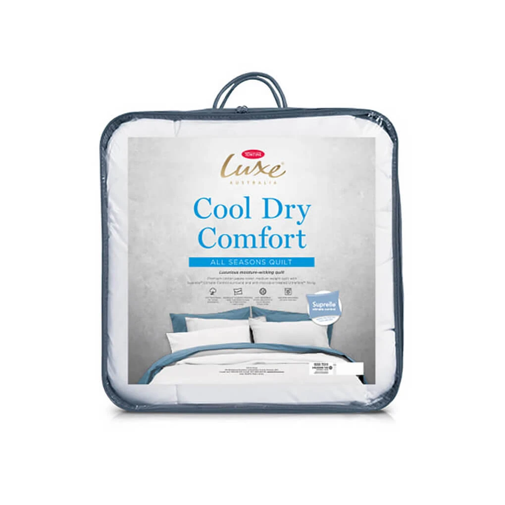 This innovative and luxurious Tontine Luxe Cool Dry Comfort quilt features Suprelle™ Climate Control fibres which wick away moisture to leave you feeling cool and dry throughout the night. For additional cooling and comfort this quilt has a breathable premium cotton japara cover.